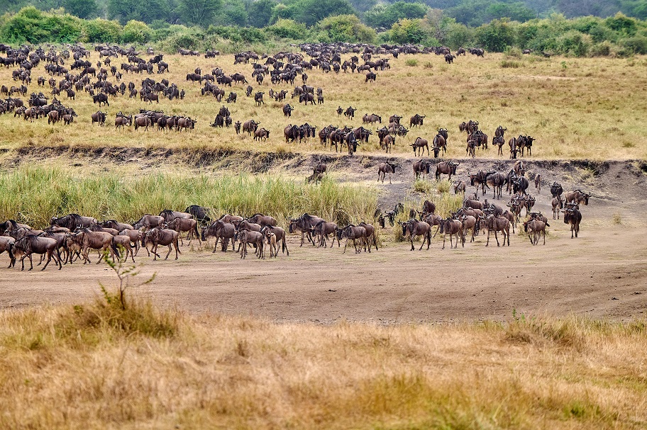 Великая миграция в Серенгети, когда более двух миллионов антилоп гну, зебр и газелей пересекают саванну в поисках свежих пастбищ, считается одним из самых впечатляющих природных зрелищ на планете. Это событие происходит круглый год, но наиболее зрелищные моменты приходятся на период с июля по октябрь.
